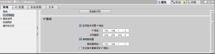第二步,設置PLC的網絡參數,包括IP地址,子網掩碼和路由器地址。路由器地址就是PLC遠程控制網關LAN口的地址(默認是192.168.1.1),子網掩碼一般都是設置255.255.255.0,IP地址要和路由器地址在同一個網段(即前3個數字一樣,最后一個可以任意設置),我這里設置的是192.168.1.2。