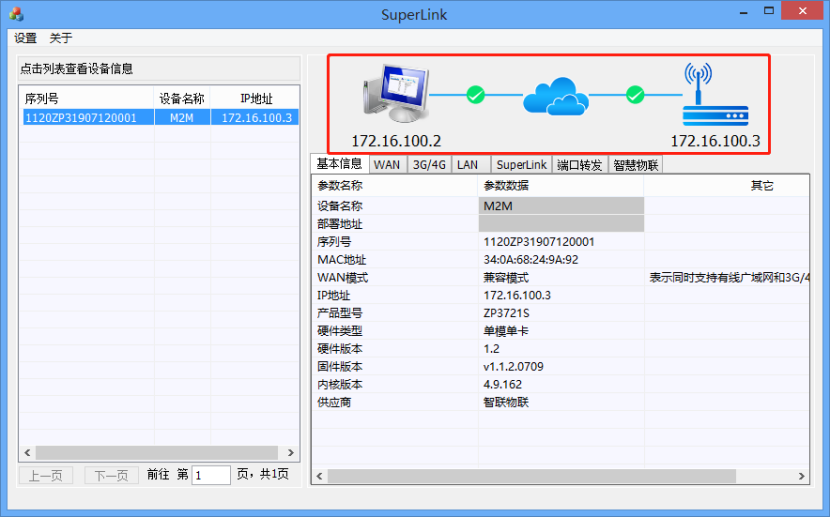 第四步,要實現遠程控制PLC,那么首先得讓PLC遠程控制網關連上網絡。讓它上網也很簡單,插上4G天線,插上一張SIM卡(設備支持全網通,三大運營商的SIM卡均可),然后給設備上電,不需要任何設置它就能自動連上4G網絡了。 第五步,PC登錄superlink軟件,如下圖紅框處所示,如果能看到2個綠色的“√”,表示PLC遠程控制網關和PC端的網絡狀態都是正常的,代表PC端已經和PLC遠程控制網關連接上了。