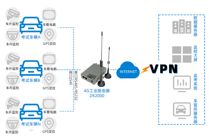 智能駕考遠程監控方案4G工業路由器物聯網應用